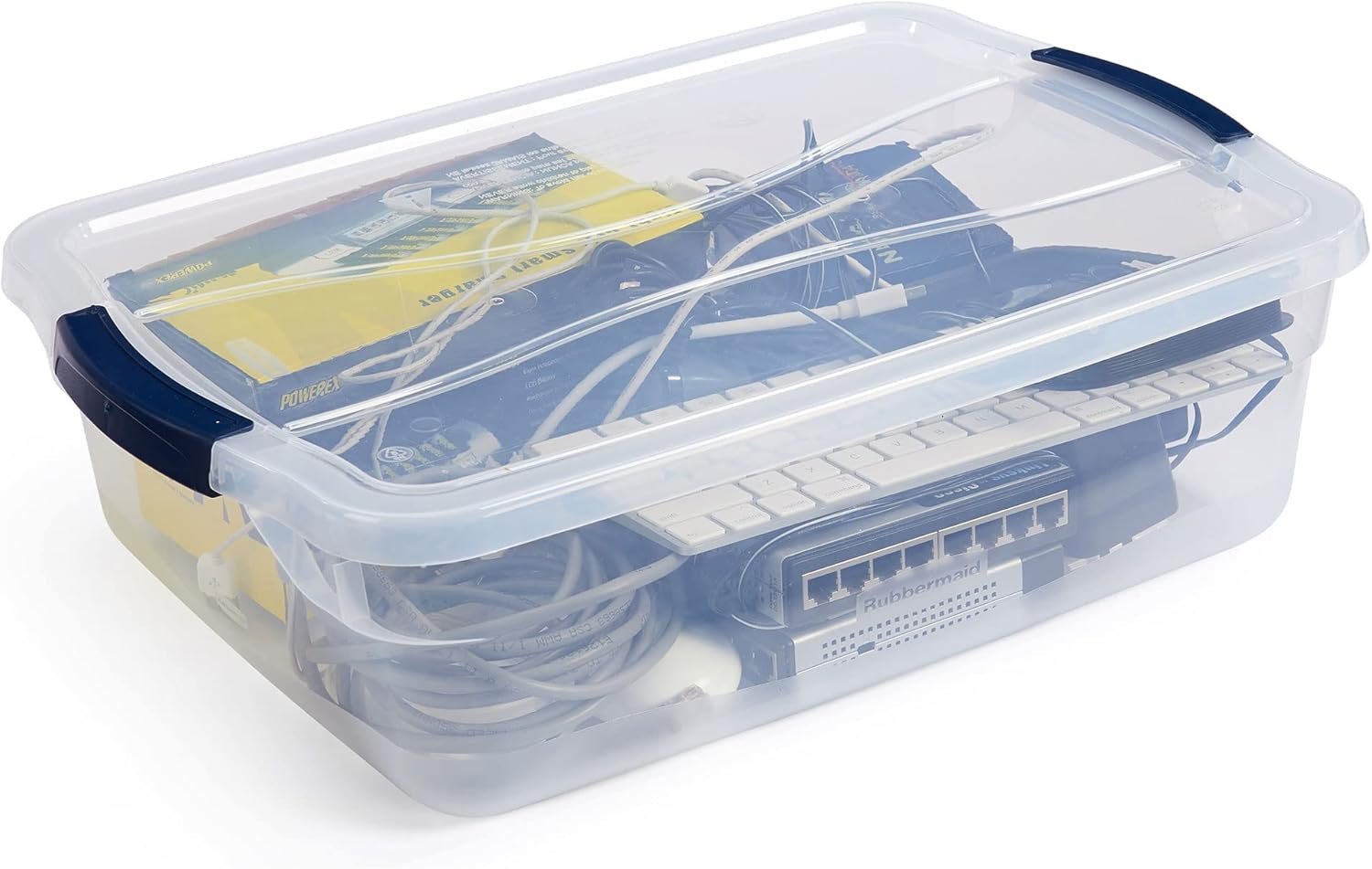 This product is more versatile and sized conveniently compared to Sterilite Ultra Latch boxes, which are heavier but more expensive. The Amazon Basics plastic containers are similar but lack the sturdy latching handles and clarity of the Rubbermaid version. Regarding warranty, Rubbermaid offers a strong customer service record and stands behind its organization tools.