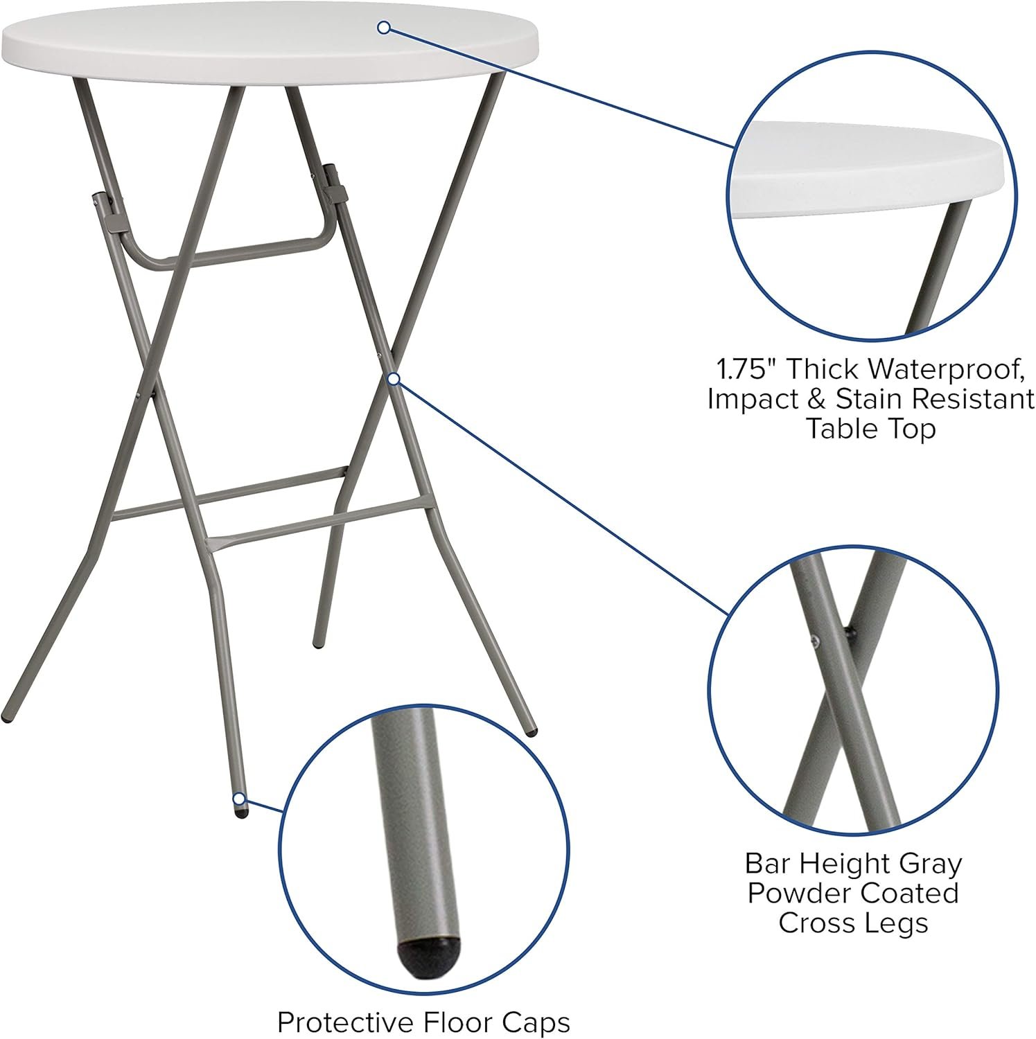 - Durable Plastic Build: Granite white polyethylene top is both stain- and impact-resistant—ideal for a plastic bar table that lasts.