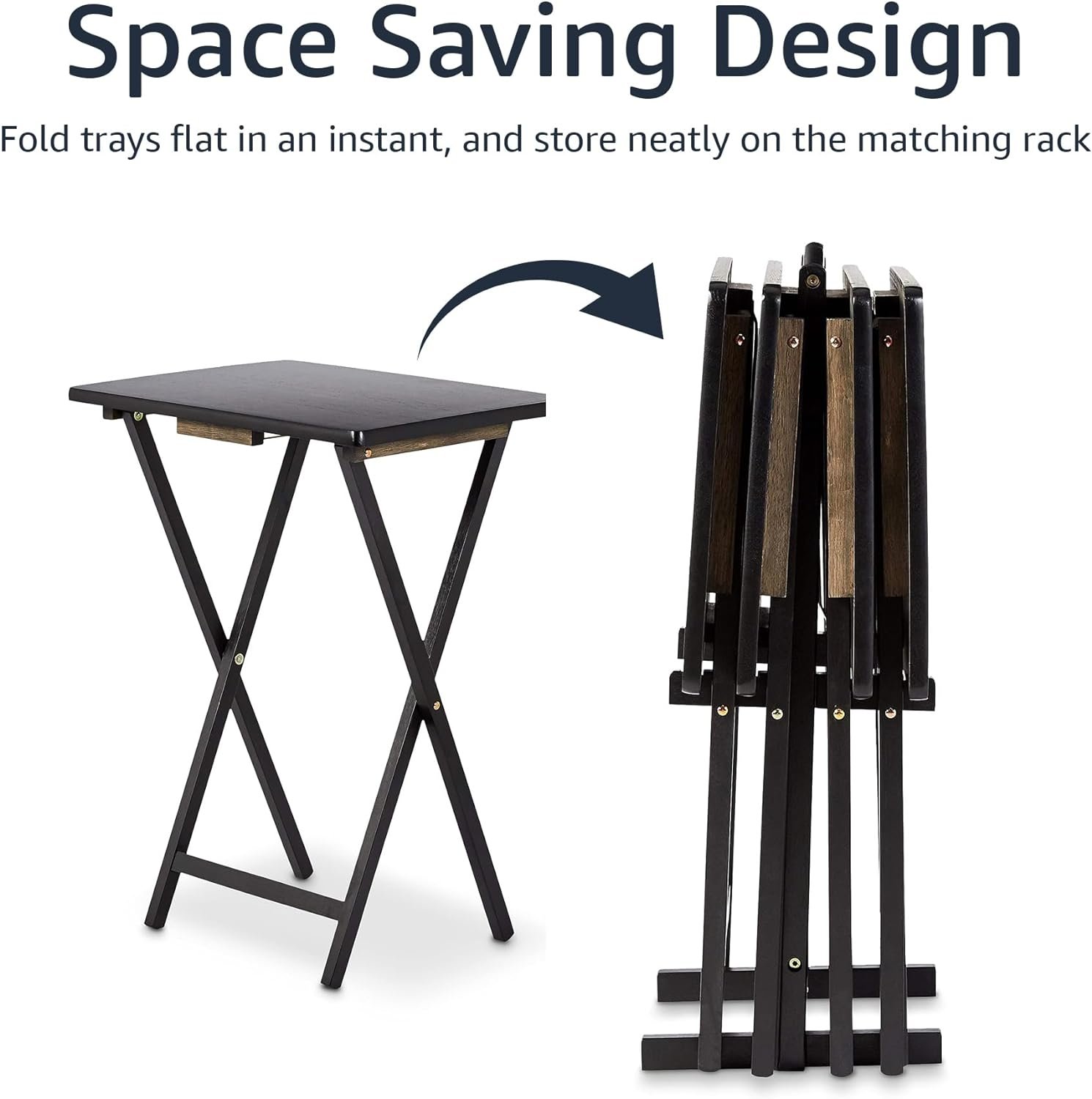 • Set of Four: Includes a matching black storage rack and four sturdy trays—perfect for entertaining or everyday use as a tv tray set or home furniture tray.