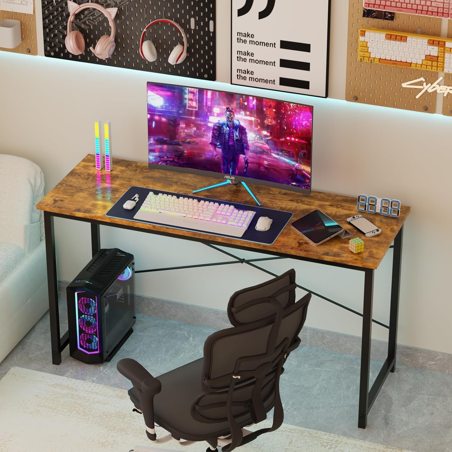 This product’s scratch-resistant and waterproof surface made maintenance a breeze. Placing a 24-inch monitor, laptop, and a few textbooks on the desk did not affect sturdiness—a testament to the durability of the particle board and steel frame.