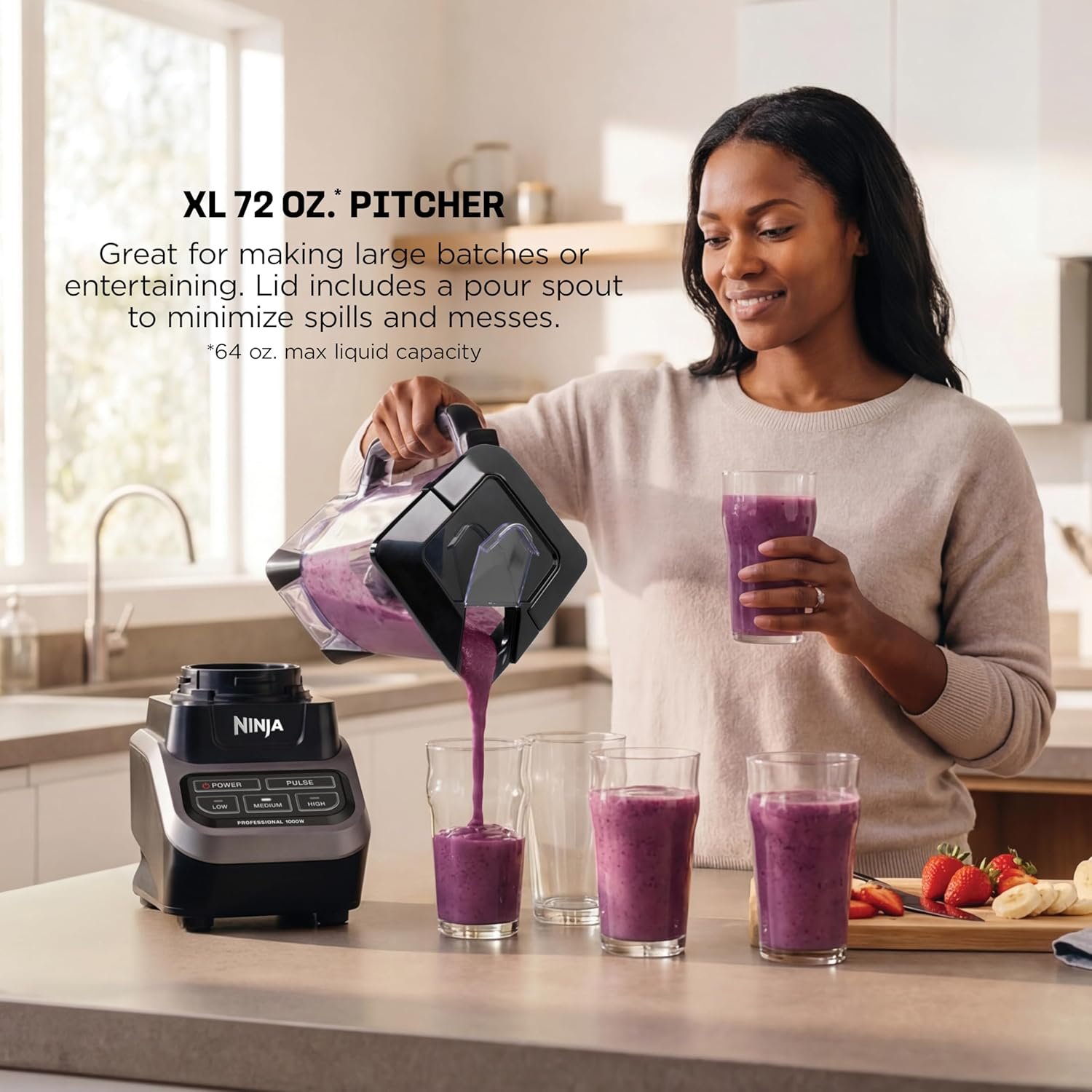 - Large family capacity: This model includes a generous 72 oz BPA free pitcher, making it perfect for blending large batches.